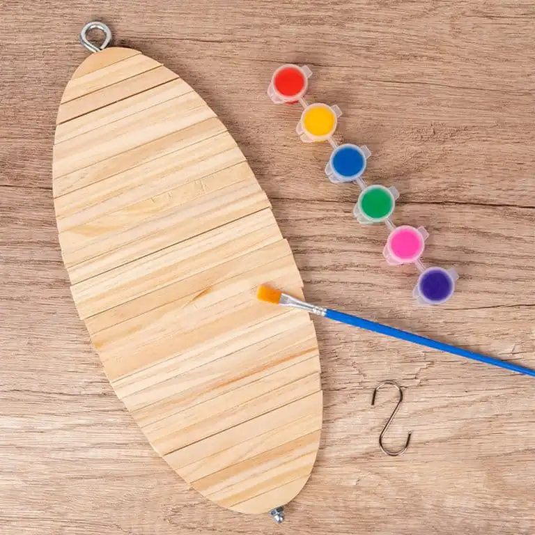 Includes paint and brush for kids to color and decorate their mobile.
