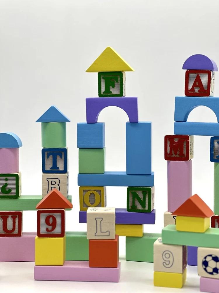 A colorful set of 36 wooden cognitive building blocks designed to enhance children’s creativity, imagination, hand-eye coordination, and observation skills. These educational blocks come in various shapes, colors, and sizes, allowing kids to build different structures while learning about shapes and spatial relationships. Perfect for preschool learning and motor skill development.