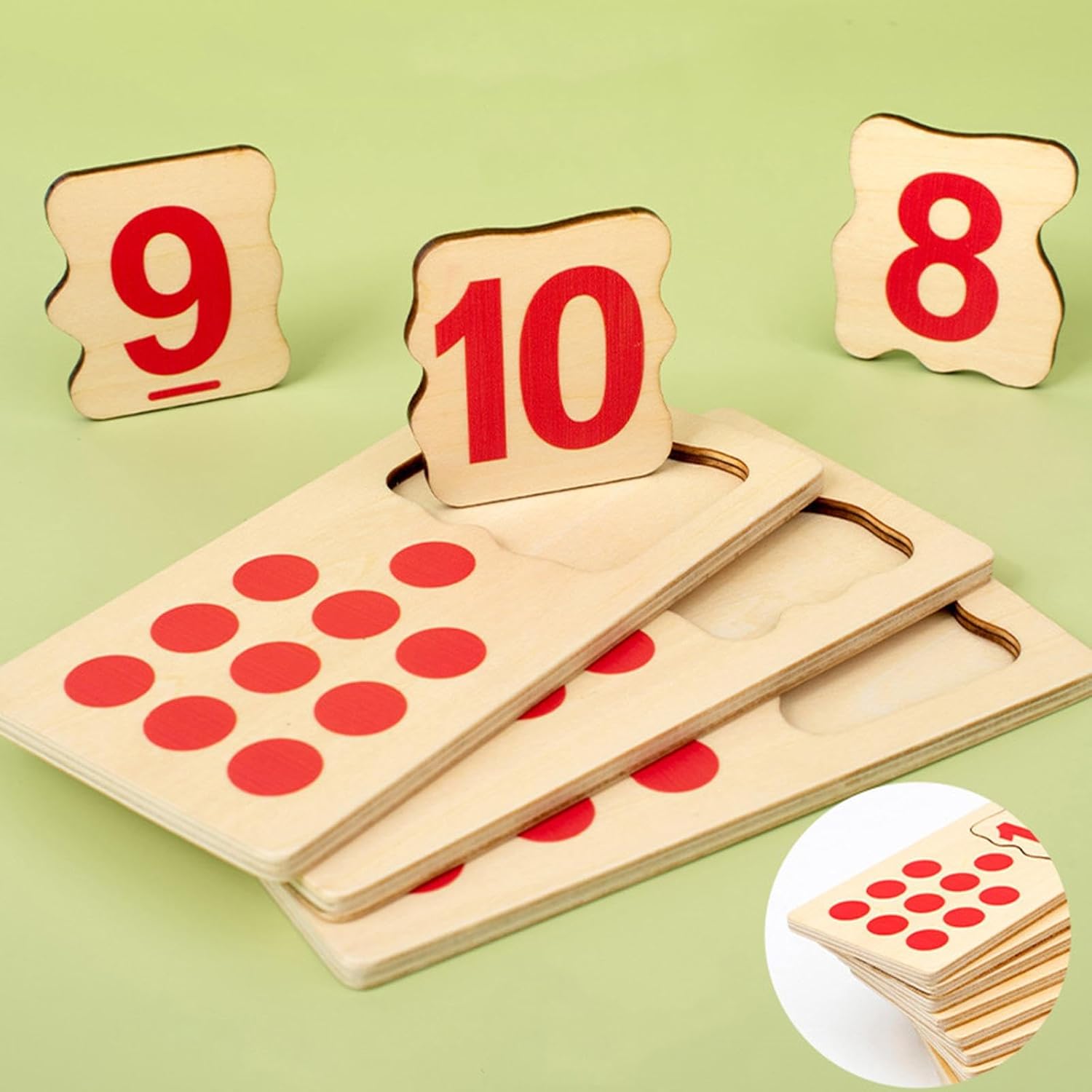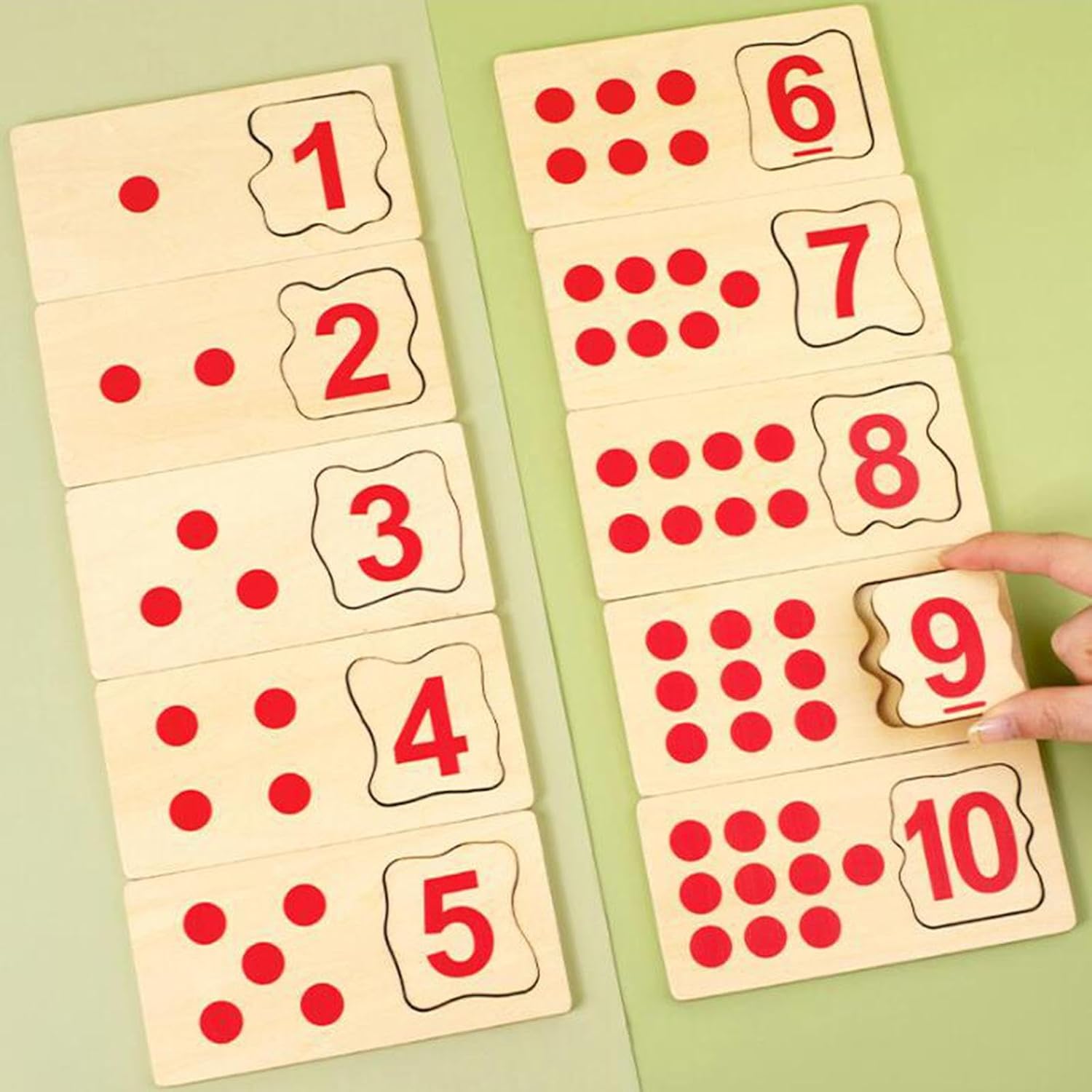 This Wooden Quantitative Matching Puzzle is an educational toy designed to help young children learn counting, number recognition, and matching skills. Each puzzle piece features a number on one side and corresponding red dot counters on the other, allowing kids to visually connect quantities with numerals.