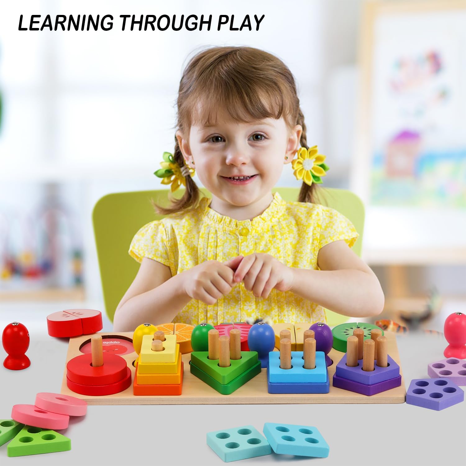 Montessori Toys for 3-Year-Old Boys and Girls, Wooden Sorting & Stacking Toys, Toddler Educational Shape Sorter and Color Learning Toys Perfect Birthday & Preschool Kids Wood Gift.